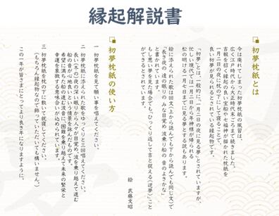 「初夢枕紙(はつゆめまくらがみ)」は、新年の初夢に良い夢を見るための和紙でできた縁起物です。枕の下に敷くことで、一年の運気を呼び込むとされています。年末はお客様との関係を深める絶好の機会です。従来のカレンダーやタオルに代わり、縁起物として喜ばれる新しいご挨拶品をご活用ください。お客様との絆をさらに深め、新しい年が皆様にとって素晴らしい一年となりますよう心よりお祈り申し上げます。
